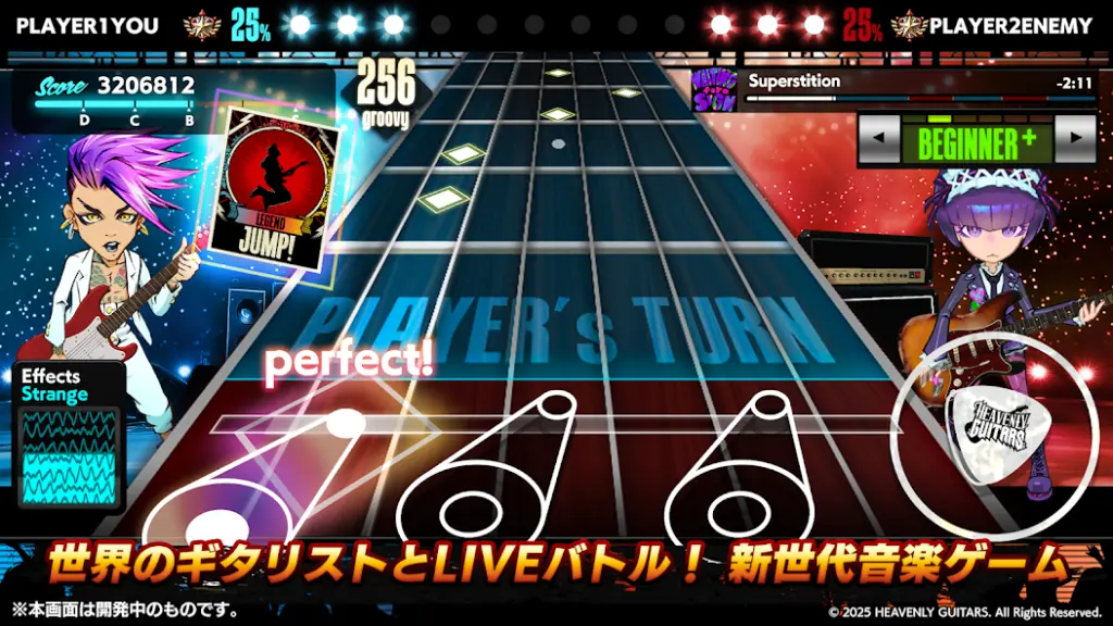 Heavenly Guitarsで戦略バトル&カスタマイズを楽しもう! 好きなタイミングで難易度を変えて差をつける!LIVEバトル攻略術 『Heavenly Guitars』では従来とは違い、LIVEバトル中でもリアルタイムに難易度を変更できちゃいます!プレイヤーは相手のミスや... -